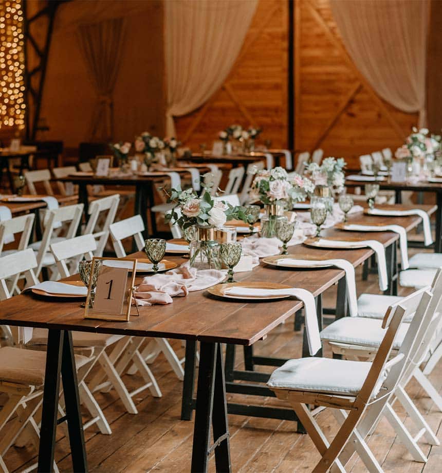 Celebrate your special day with a rustic farm wedding. Our venue accommodates intimate gatherings and larger celebrations, with plenty of outdoor space and beautiful spots for photos. Choose from our curated wedding packages or work with our team to customize your event.